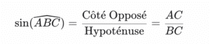 Le rapport Opposé/Hypoténuse correspond au Sinus (SOH).